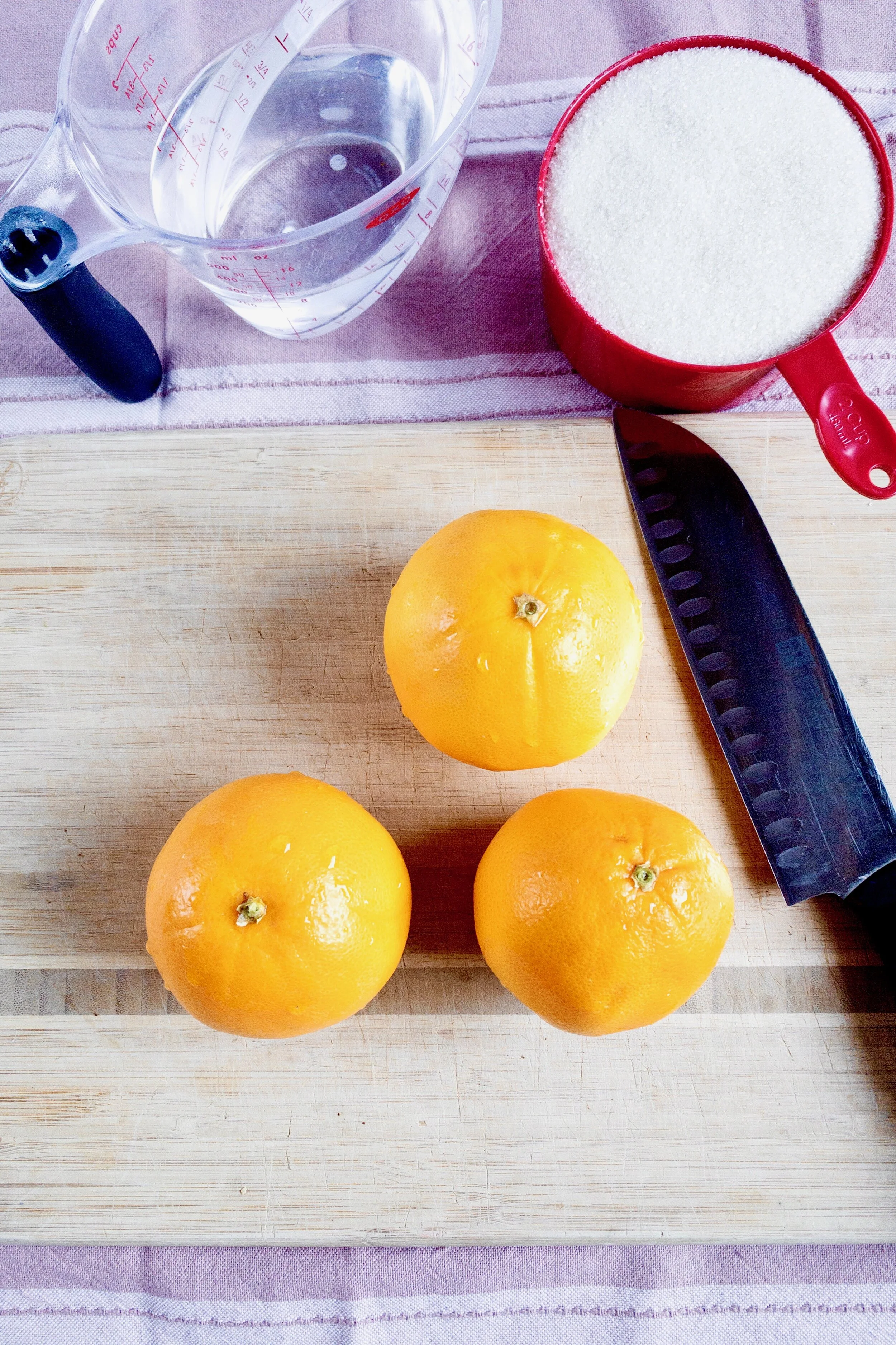 Note that you need a really sharp knife for this, otherwise you'll have to press down too hard on the orange.